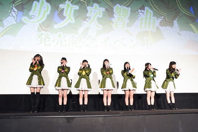 劇場版『Wake Up, Girls! 青春の影』主題歌「少女交響曲」の発売イベントが9月5日、都内劇場で開催され、ユニット「Wake Up, Girls!」の島田真夢役吉岡茉祐、林田藍里役永野愛理、片山実波役田中美海、七瀬佳乃役青山吉能、久海菜々美役山下七海、菊間夏夜役奥野香耶・岡本未夕役高木美佑が登場した。