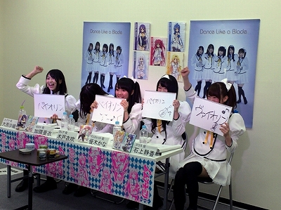 5人で皆様の前に登場するのは、3月末の「AnimeJapan 2014」以来なにーそっくすすでしたが、イメージソング「祝祭のエレメンタリア」の話題になると「はっ!はっ!はっ!はっ!」の掛け声コメントがたくさん流れ、右手殺しの振り付けも早速浸透しはじめている様子。