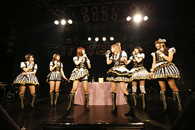 ミニライブは、タウラスの「メメント?モメント♪ルルルルル☆」からスタート。ハイテンションのキュートボイスで畳み掛けていく楽曲にぴったりのステージを駆け回るようなめまぐるしい振付と、赤い照明の中ぐーるぐーると身体を揺らすゆったりした動きの落差が楽しい。桐谷は今回の夜の部の「メメント?モメント♪ルルルルル☆」が一番楽しく歌えたとのことだった。実は間奏のフリー台詞が横浜バージョンになっていたとのこと。会場サイドでは音が巻いて聞き取れなかったのだが、そんな遊び心もタウラスらしさだろう。