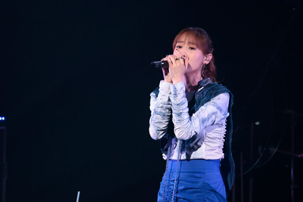 “UPCOMING ARTIST”枠の最後の1組は、2022年にフライングドッグが開催したオーディション「犬コン!」の声優・歌手・シンガーソングライター部門でグランプリを受賞し、2023年に歌手デビューを果たした現在19歳の“新米”シンガー、中島 怜。透明感と繊細さを併せ持った唯一無二の歌声の持ち主で、1曲目に歌った「サプライズ」(TVアニメ『シュガーアップル・フェアリーテイル』第2クールOPテーマ)からその持ち味を存分に発揮する。続いて披露された「はじまる」は彼女自身が作詞をしており、これから始まる新しい世界への期待をピュアなクリアボイスで表現。そして2024年4月放送スタート予定のTVアニメ『終末トレインどこへいく?』のOPテーマ「GA-TAN GO-TON」をライブ初お披露目。前の2曲とはまた趣きの異なるドリーミーな歌唱で客席をうっとりさせる。初々しいMCでも心を掴みつつ、初めての“リスアニ!LIVE”、そして初の武道館という大舞台を見事にやり遂げた。