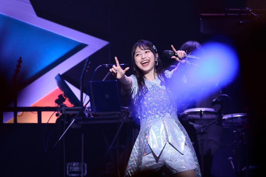 終盤戦を華やかなステージで盛り上げたのが、メディアミックスプロジェクト『ラブライブ!スーパースター!!』から生まれた11人組スクールアイドルグループ、Liella!。“リスアニ!LIVE”には初参戦、生バンドでのパフォーマンスも初となる。幕開けを飾ったのは、彼女たちが現在開催中の5thライブ“ラブライブ!スーパースター!! Liella! 5th LoveLive! ~Twinkle Triangle~”のテーマソング「シェキラ☆☆☆」。ジャジーで大人っぽい曲調に合わせた壮麗なダンスパフォーマンスで魅せる。そして昨年のライブイベント“異次元フェス アイドルマスター☆♥ラブライブ!歌合戦”でも歌われて人気を集めた「スター宣言」でスターへの道を駆け上がる心意気を力強く示すと、挨拶とMCを挿んで、ディスコ調のポップ&ダンサブルな人気曲「キラーキューン☆」を披露。11人が次々と入れ替わってフォーカスされる歌割りと“キュンキューン”と繰り返される胸キュンなフレーズで客席のハートを奪う。続く「UNIVERSE!!」では、楽曲の壮大なスケール感とアイドルとしての高みを目指す強い意志を滲ませた歌声がエモーションを誘発。最後は“終わらない冒険”と未来への希望を託した「TO BE CONTINUED」を11人で元気いっぱいにパフォーマンス。アニメの主題歌/挿入歌は外した攻めのセットリストだったが、それが余計にグループとしてのポテンシャルとLiella!楽曲の奥行きの深さを感じさせた。