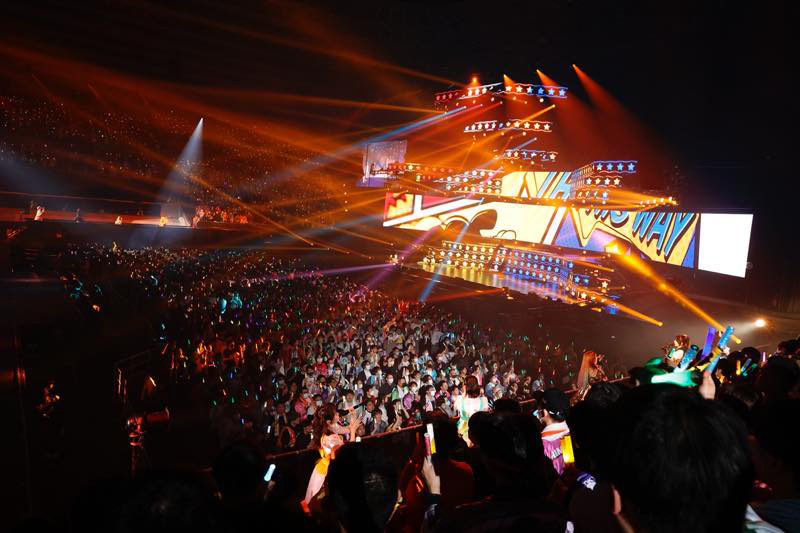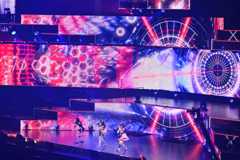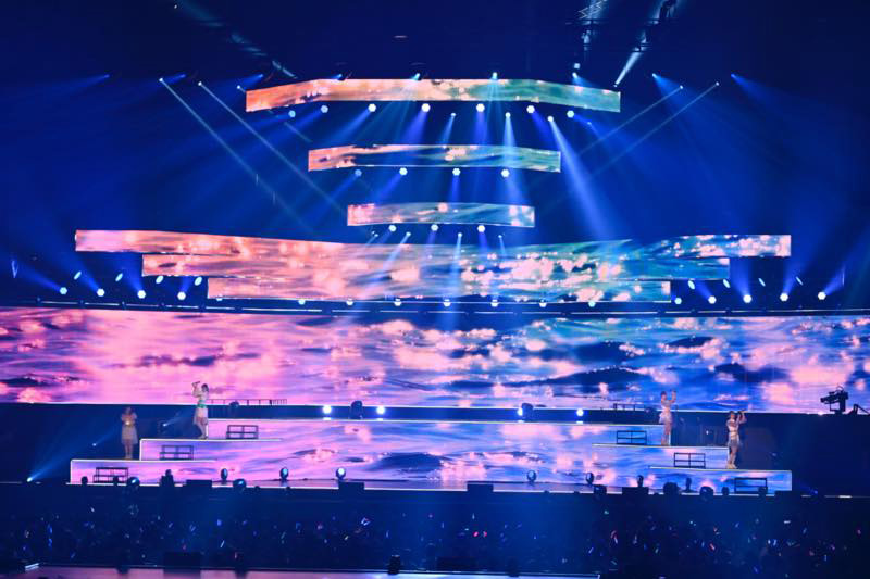 おなじみの協賛企業紹介&コールを経て、おだやかで美しいオーバーチュアと共に開演の映像演出が上映された。大阪公演は“Brilliant Blooms”を冠していることもあり、色とりどりの花をモチーフにした演出が目立つ。メインステージには六段の多面スクリーンが設定されており、視界を埋め尽くす光と色の洪水が壮観だ。