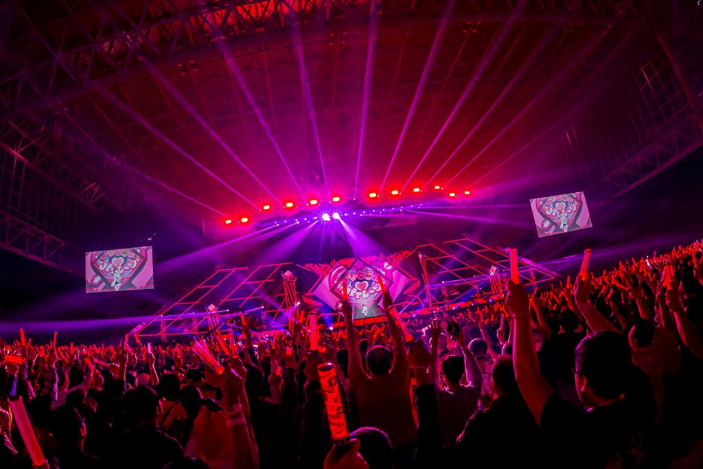 今年は生演奏での臨場感溢れるARライブという基本路線はそのままに、会場の規模を拡大。ステージ数もHoneyWorks stageを含めると2日間で合計4公演の開催となった。なかでも新たな試みが、観客席を取り囲むように「左」「正面」「右」に用意された3つのメインステージ。公演中はこの3箇所をローテーションするように使用ステージが変化するため、会場の様々な場所にメンバーたちが現れる。大会場でアーティストを乗せて回るトロッコや移動式ステージなどにも通じるような、メンバーをより近くに感じられる工夫がされていた。