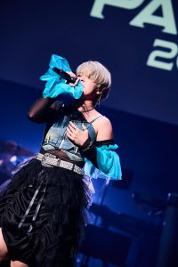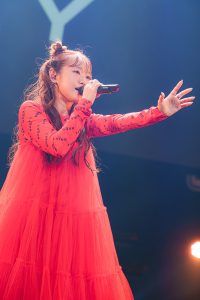 “HIGHWAY STAR PARTY”初登場のアーティストが続く中、グループ活動時代から実力は折り紙付きの荒井麻珠も鮮烈な印象を残した。『外科医エリーゼ』EDテーマ「Listen」を、華やかな真っ赤なワンピースを揺らして優雅に歌い上げた。