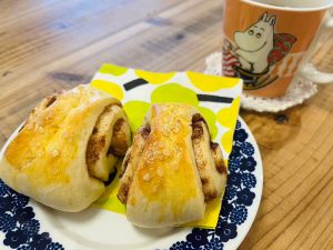 まず欲しいもの、やってみたいことを書き出していく。誕生日ということで、大きく特別感のありそうなものから考えてみた。海外旅行に行きたい、ヘリコプターに乗りたい、水上アスレチックがしたい……色々やりたいことは出てきたのだが、予約が間に合わないものや季節感がおかしなものばかり。我ながら計画性に欠けている。もっとずっと身近で、私だからこそときめくもの、やりたかったことを探さないと意味がない。小さなことも思いつく限りたくさん書いた。その中で今の私が特に惹かれるものが出てきた。それは、シナモンロールを焼くこと。フィンランドでは、シナモンロールの日が設定されているくらい日常に溶け込んでいる食べ物らしい。私の中でシナモンロールは、特別な日や頑張った時に食べるイメージがあり、日頃から頻繁に食べるものではなかった。また北欧のシナモンロールは私たちの知っている渦を巻いたカップケーキのような形ではなく、焼く前に中心を潰すので平べったい。本や動画でフィンランドを調べている時に100%出てくるその北欧式シナモンロールが、なんとも美味しそうなこと。考えていると今にも甘く香ばしいスパイスの香りが、鼻を抜けていくようだ。このエッセイのタイトルでおわかりのとおり、北欧の生活に憧れている私にとっては、名前を聞くだけで胸が躍るほど、夢のようなパンとなったのである。買うのもいいが、せっかくなら自分の手で誰の力も借りずに、イチから作ってみたいとずっと思っていた。最初に言っておくと、私は料理が得意ではないしパンなんて作ったこともない。でもだからこそ、この初めての経験を自分への誕生日プレゼントにしようと思った。