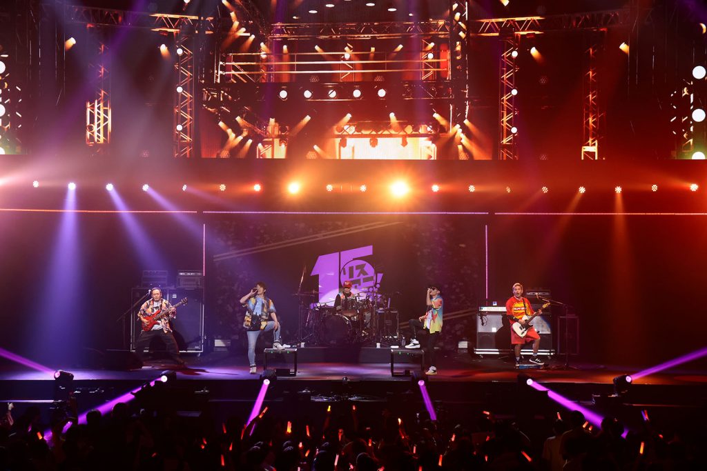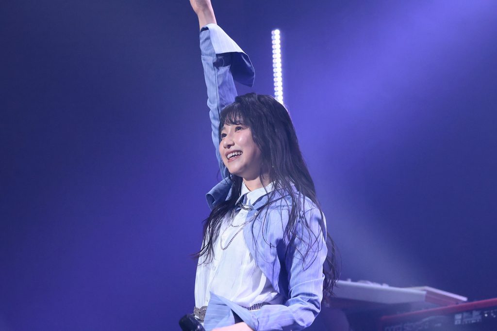 この日のMCを務めたのは、Spotifyで配信中のアニソン情報トーク番組「リスアニ!RADIO」でもお馴染みのラジオパーソナリティ・MC、青木佑磨。大型LEDスクリーンに映された15周年のアニバーサリームービー、黒須克彦(b、バンマス)、柴﨑洋輔(key)、山本陽介(g)、村田一弘(ds)、Gussy(mnp、per)から成るリスアニ!BANDの演奏とカウントダウンを経て、いよいよ“リスアニ!LIVE 2025”最終日の幕が開ける。