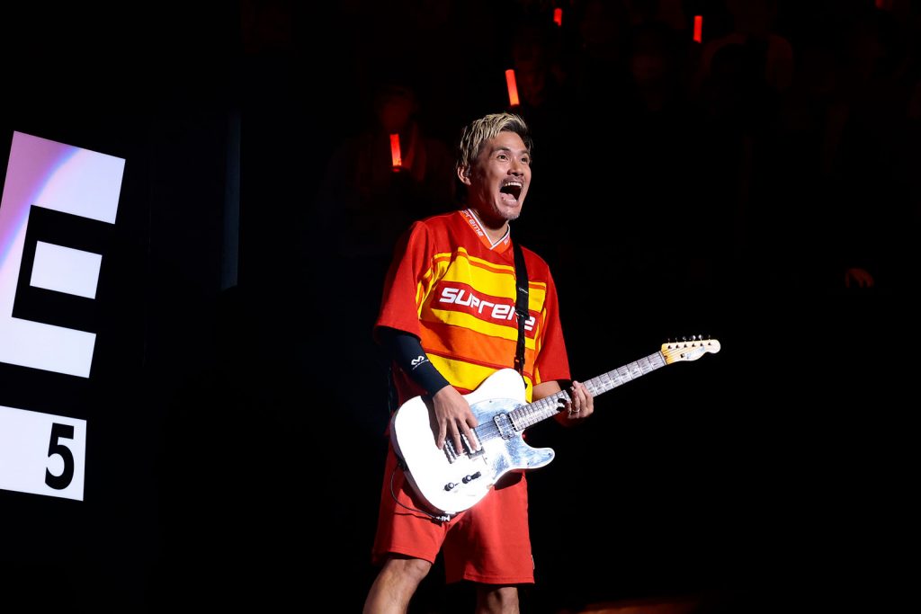 そしていまやアーティスト/クリエイターとしてアニメ音楽シーンには欠かせない存在となっているオーイシマサヨシが“リスアニ!LIVE”に初参戦。恒例となっているファンからの愛に溢れた「帰れ!」コールでステージに迎え入れられると、開幕からファンク調の「なまらめんこいギャル」(TVアニメ『道産子ギャルはなまらめんこい』OPテーマ)をステップを踏んだり時に「アォ!」というフェイクを交えながらノリよく届けて、会場も“ギャル!”などの合いの手を入れて盛り上がる。その後のMCで、念願の“リスアニ!LIVE”初出演ということで「完全燃焼セットリスト」を持ってきたことを明かすと、「俺の肩が壊れるか、みんなの肩が壊れるか、勝負や!」とビッグバンドサウンドを取り入れたジャズ歌謡調の「ギャンブリングホール」(TVアニメ『凍牌~裏レート麻雀闘牌録~』OPテーマ)を披露。この曲のサビの部分ではオーイシの“Hey!”という掛け声に合わせて観客がコブシを突き上げるポイントが18回あり、みんなで肩をぶん回して盛り上がる。その後、オーイシはアコギを手にして得意の高速スラップ奏法で次にやる楽曲をアピール。耳馴染みのあるフレーズに会場からは期待と喜びの声が上がる。その楽曲はオーイシマサヨシ名義で歌った初めてのアニメタイアップ曲「君じゃなきゃダメみたい」(TVアニメ『月刊少女野崎くん』OPテーマ)。武道館の大合唱に応えるように、オーイシも超ロングトーンを聴かせてお互いにテンションを高め合っていく。この3日間のライブを支えてきたリスアニ!BANDを称賛するMCを挿み、ここから『GRIDMAN UNIVERSE』シリーズの楽曲を2曲連続で披露。その1曲目は「インパーフェクト」(TVアニメ『SSSS.DYNAZENON』OPテーマ)。天を衝くようなハイトーンボイスが武道館を爽快に吹き抜けていく。間奏では山本陽介がステージ前に躍り出て、オーイシに背中を預けながらギターソロを弾く場面も。オーイシが膝をつきながら絶唱する姿もヒロイックに映った。そして最後は会場中の人々がシンガロングしてかつてないほどの景色を作り出した「uni-verse」(劇場アニメ『グリッドマン ユニバース』主題歌)。昨年には単独で武道館ライブを成功させ、今年3月には2度目の武道館ライブを予定しているオーイシが、初の“リスアニ!LIVE”で武道館に集った人々の心をひとつにして大きなユニバースを作り上げた。