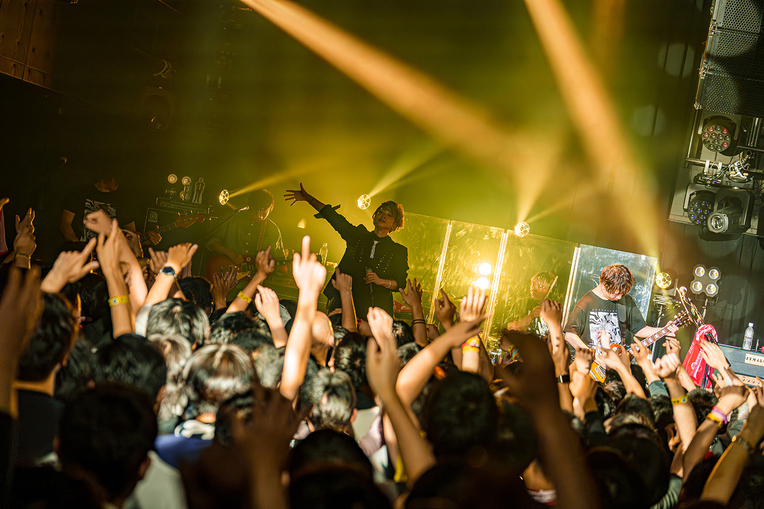 そんな強烈なパフォーマンスで本編を終えた後、まだまだ燻り続けるフロアをさらに焚きつけるように始まったのは「七色シューティングスター」(総選挙8位)という超初期の楽曲。現在の岸田教団&THE明星ロケッツとはまた異なる若々しいメロディをichigoが歌う姿は新鮮だ。続く「MIDNIGHT MAGIC」(総選挙27位)も同様に初期の楽曲で、こうしたアンコールで岸田たちのルーツが窺えるのは面白い。そこから「ハンゲツトウゲ」(総選挙21位)、「ストライク・ザ・ブラッド」(総選挙23位)、「HIGHSCHOOL OF THE DEAD」(総選挙25位)とメジャーデビュー以降の楽曲が続くという、不思議なコントラストのアンコールとなった。