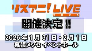 終演後には“リスアニ!LIVE 2026”についての新情報も発表に!すでに開催決定の情報は発表されていたが、2026年1月30日(土)・2月1日(日)の2days開催が決定した。会場は幕張メッセ イベントホール。続報をお楽しみに!