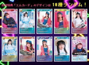 初回特典として、スマホやパソコンから音楽コンテンツや画像、映像を楽しめるカード「エムカード」を封入!(全10種類ランダム封入)