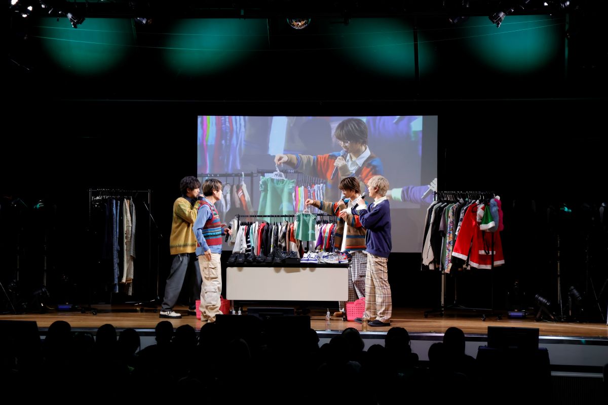 メンバーの個性があらわになり、会場も砕けたムードに包まれたなかで、ファンミ恒例のカバー曲のコーナーへ。選曲テーマは青春ソング。1曲目は和田光司の「Butter-Fly」で会場を沸かせ、2曲目はフジファブリックの「若者のすべて」でしっとりと聴かせる。パフォーマンスの幅の広さも彼らならではだ。