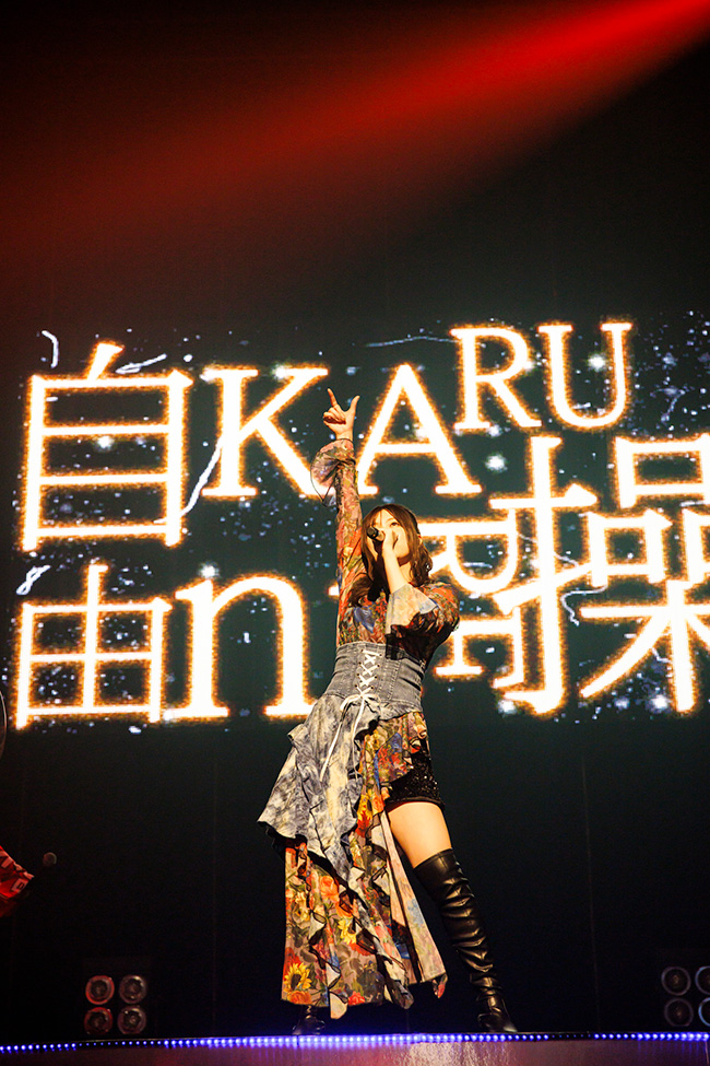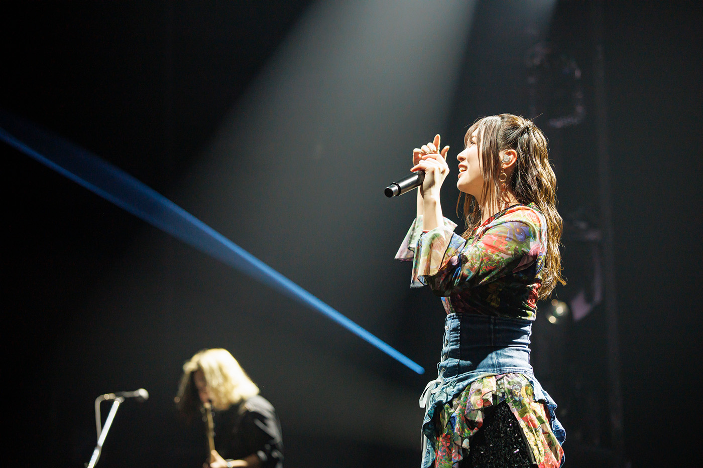 壮大なメロディと共にステージがブルーとパープルのライティングに染まり、ファンが灯す真っ赤なコンサートライトの輝きで場内が埋め尽くされると、オープニングナンバー「Blow out」(TVアニメ『ロクでなし魔術講師と禁忌教典』OPテーマ)のメロディに乗ってステージ中央に登場した鈴木を大歓声が包み込む。スタートからパワー全開のボーカルとファンの激しいクラップが場内を揺るがし、鈴木のかけ声に応えるようにコールが巻き起こった。そして間髪入れずに「蒼の彼方」(TVアニメ『ソラとウミのアイダ』EDテーマ)になだれ込み、鈴木がステージ前面を練り歩きながら力強く歌を届けると、間奏では激しいコールが巻き起こった。